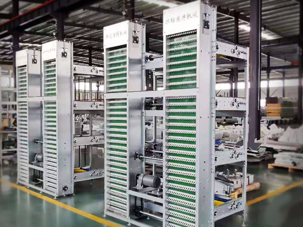 采用皮带+整体蛋爪机构强大的集蛋能力结构简单,具有皮带张紧和纠偏装置运行稳定可靠,破蛋少水平集蛋装置滚动中调整鸡蛋方向每层有收集盘,收集软壳蛋和污物集蛋导向装置确保鸡蛋均匀分布在电梯集蛋装置上,提高效率
